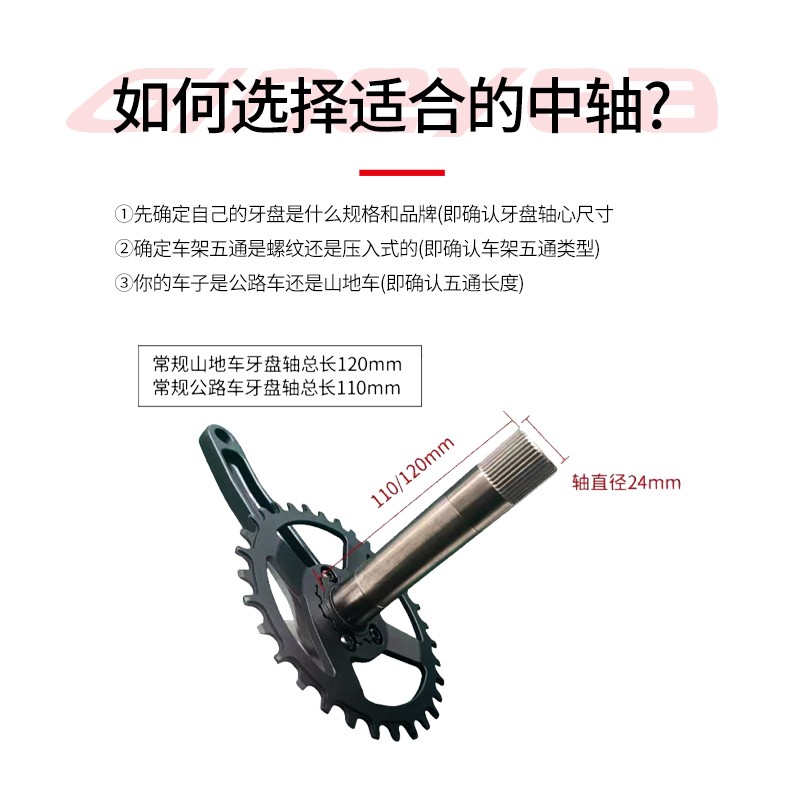 景晔山地公路自行车培林中轴 中空一体旋入式螺纹中轴BC1.37x24T