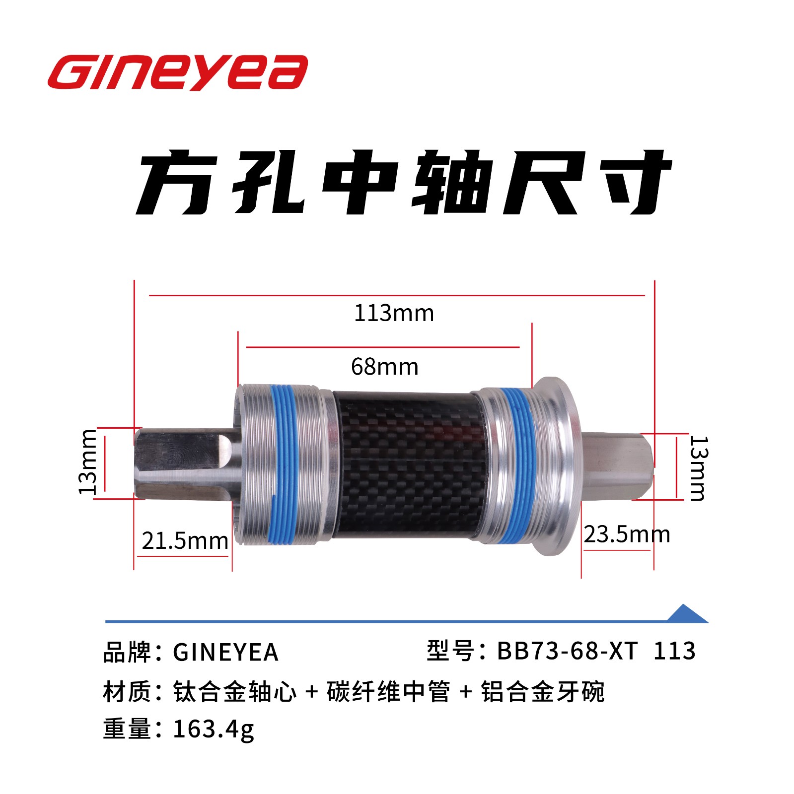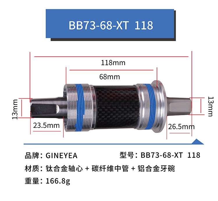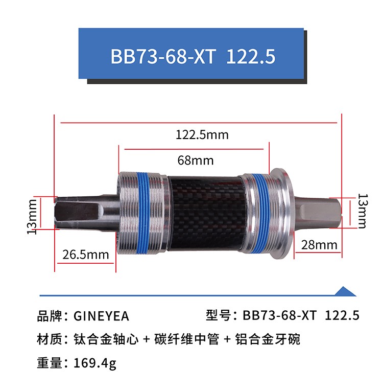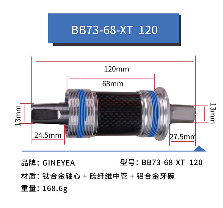 景晔钛合金方孔中轴山地车改装陶瓷珠中轴113/118/120/122.5