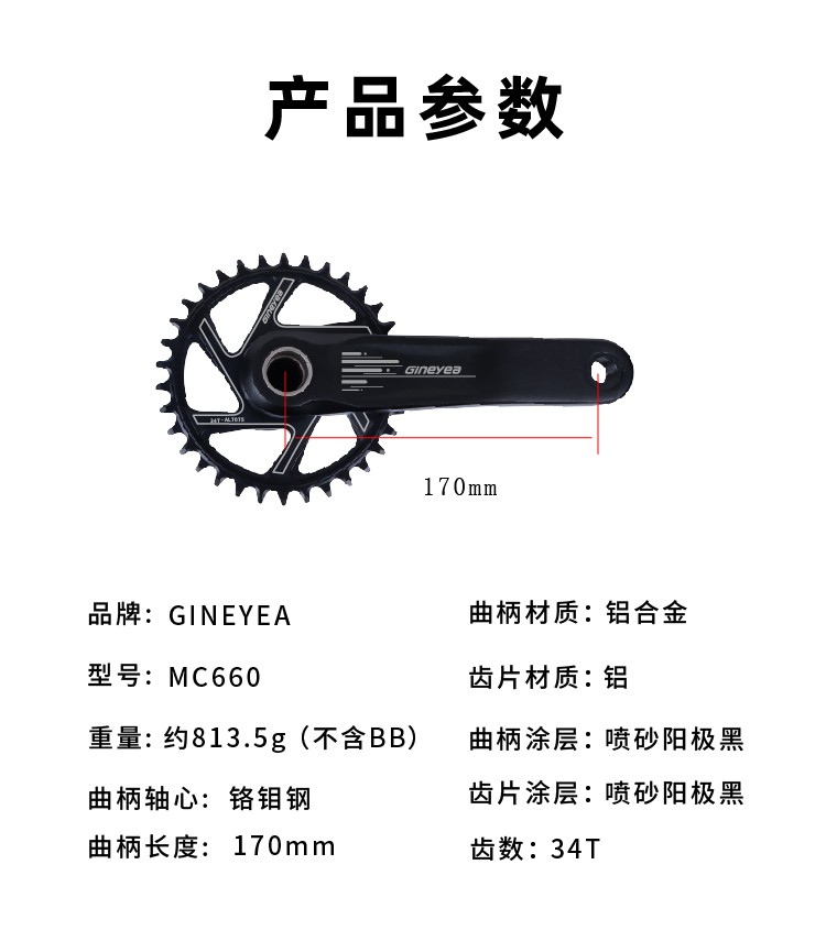 景晔山地车正负齿牙盘曲柄中空一体牙盘170改装单盘36T自行车配件